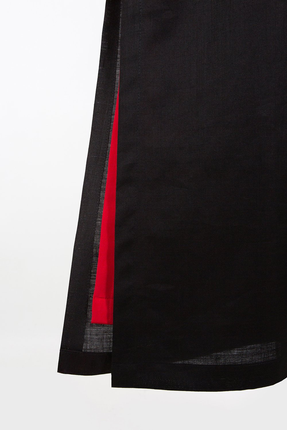 มีกระเป๋าล้วงสองข้าง มาพร้อมเส้นเชือกผูกเอวเส้นเล็ก ยาวพิเศษ ที่ปลายเชือกมีตัวครอบทรงระฆังรองรับพู่ cotton คุณภาพดี ชุดสีดำตัดกับซับในสีแดงสด ผ่าข้างสูง เวลาเดินซับในสีแดงจะแล่บออกมาแว๊บๆ ค่ะ